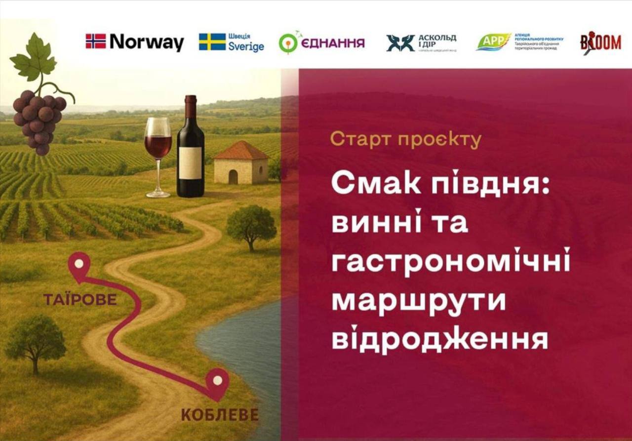 Реалізація проєкту «Смак півдня: винні та гастрономічні маршрути відродження» розпочата громадською організацією «Агенція регіонального розвитку Таврійського об’єднання територіальних громад», Таїровською та Коблівською селищними радами та ГО «Арт-майстерня «Bloom» за фінансування урядів Норвегії та Швеції.