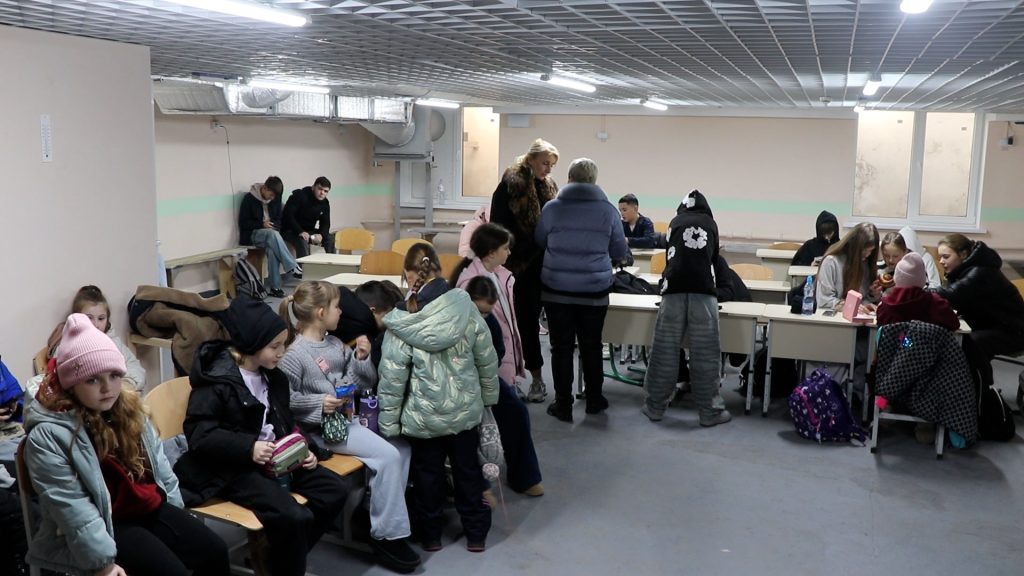 Укриття теж світле, тут свіжий ремонт, добре працює вентиляція, є сучасні туалети, запаси питної води. Діти розміщуються на лавках, а деякі з них віддають перевагу більш активному проведенню часу — грають у настільний теніс.