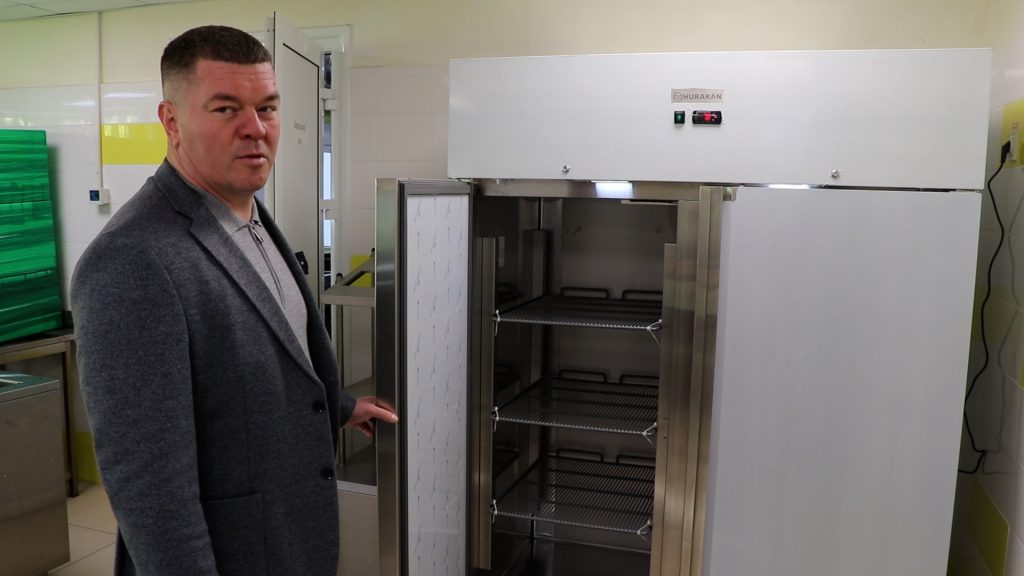 Артем Баранов розповідає, що у випадку повітряної тривоги під час обіду діти можуть взяти розігріті ланч-бокси з собою в укриття і тут поїсти.