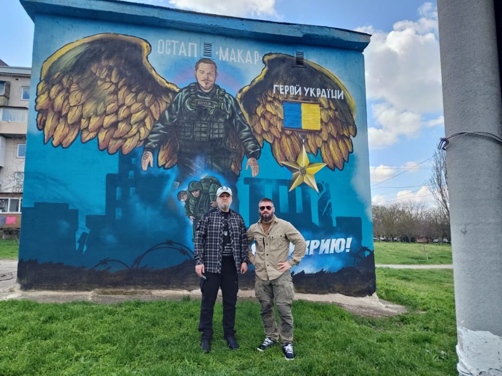 Наступною зупинкою гостя став адміністративний центр Таїрівської громади. Тут, у селищі Таїрове, Валерій Маркус вперше побачив мурал, присвячений загиблому магурівцю Остапу Макарову, а по факту всім хлопцям, які віддали своє життя, захищаючи Україну.